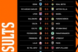 NBA直播10月24日讯 欧联杯联赛阶段第三轮比赛战罢,诺丁汉森林2-0波尔图,费内巴切1-0斯图加特,塞尔塔2-1尼斯,罗马、里尔、维拉落败。