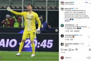 NBA直播12月4日讯 国际米兰门将何塞普·马丁内斯在Instagram发文,谈到球队晋级意大利杯八强。