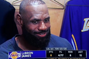 NBA直播12月5日讯 NBA常规赛,湖人123-120猛龙。赛后詹姆斯接受了采访。