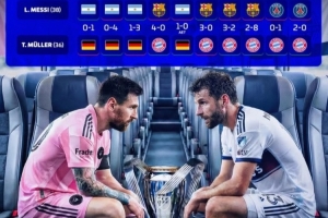 NBA直播12月6日讯 本届美职联总决赛将在迈阿密国际和温哥华白浪之间举行,38岁的梅西和36岁的穆勒也再次相遇。《转会市场》也列出了两人历史交锋情况: