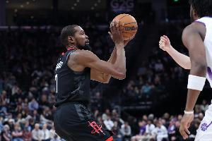 本场比赛,火箭当家球星凯文·杜兰特发开局手感不佳,5投仅1中!次节他迅速调整,火力全开,连续7投命中,单节砍下17分!下半场他手感依然火热,帮助球队迅速击溃对手!