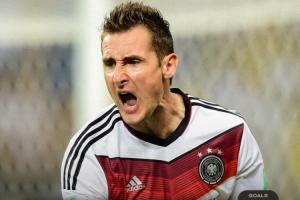 目前世界杯射手王是德国传奇球星克洛泽,他在参加的4届世界杯中一共打入16球(24场),攻破阿根廷、巴西、英格兰等队的球门,且没有点球,他进球的比赛德国队保持不败。