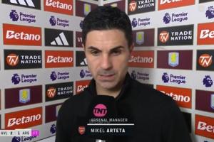 NBA直播12月06日讯 英超第15轮,阿森纳1-2遭维拉绝杀,赛后主帅阿尔特塔接受了TNT的采访。