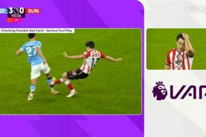 NBA直播12月07日讯 英超第15轮,曼城对阵桑德兰。补时阶段,奥尼恩蹬踏努内斯,裁判一开始出示黄牌。