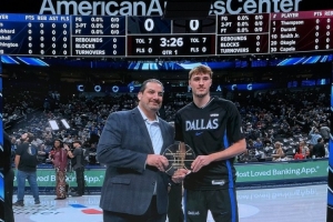NBA直播12月7日讯 独行侠主场迎战火箭,状元弗拉格赛前领取月最佳新秀奖。