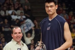 火箭赛前给姚明颁月最佳新秀奖,姚明2月场均16.5分8.8篮板1.5盖帽,命中率50.3%,罚球命中率93%,就是这么屌……