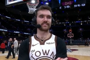 NBA直播12月7日讯 NBA常规赛,勇士在客场以99-94击败骑士,斯潘塞在场边接受了媒体采访。