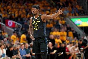 NBA直播10月24日讯 NBA常规赛,勇士加时137-131战胜掘金,巴特勒赛后在场边接受了媒体采访。