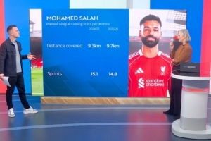 NBA直播12月8日讯 据天空体育统计,萨拉赫本赛季的每90分钟跑动要多于上赛季。