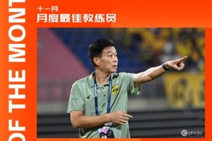 NBA直播12月8日讯 中甲联赛官方公布了11月最佳教练人选,广州豹主帅冯峰当选。