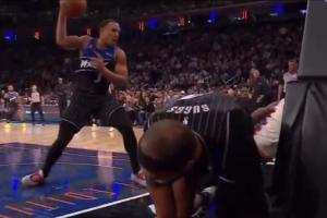 NBA直播12月09日讯 尼克斯106-100主场战胜魔术的比赛中,贝恩曾在一次快攻中,拿球怒砸OG,最终吃到技犯。