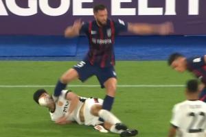 NBA直播12月09日讯 亚冠精英联赛第6轮,海港客战柔佛,比赛第16分钟,李圣龙倒地后被柔佛球员安东尼奥·格劳德尔踢到面部,随后鼻梁流血不止,但主裁判没有任何表示,VAR也没有介入。