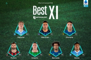 NBA直播12月9日讯 意甲第14轮战罢,联赛官方评本轮最佳阵,霍伊伦、劳塔罗、普利西奇在列。