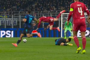 NBA直播12月10日讯 国米vs利物浦第13分钟,劳塔罗滑铲铲飞罗伯逊,裁判出示黄牌。