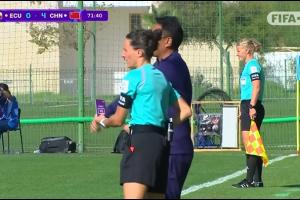 NBA直播10月24日讯 U17女子世界杯小组赛C组,厄瓜多尔女足U17vs中国女足U17。比赛第73分钟,中国队教练组申请VAR挑战,认为对手禁区内手球。裁判观看回放后判认定不是点球。