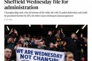 NBA直播10月24日讯 据《泰晤士报》报道,深陷危机的英冠俱乐部谢菲尔德星期三已于周五上午正式向英国税务海关总署提交文件,申请进入管理程序。