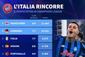 NBA直播12月10日讯 德国转会市场统计了各联赛本赛季的欧战积分,并列出榜单,英超居首,德甲、意甲、西甲排名二到四位。