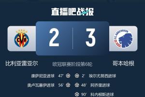 NBA直播12月11日讯 欧冠联赛阶段第6轮,比利亚雷亚尔主场2-3遭哥本哈根绝杀,欧冠一胜难求。