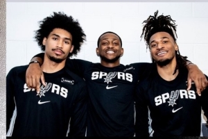 NBA直播12月11日讯 马刺官方晒图:榜眼秀哈珀接受采访时谈到了自己和福克斯以及卡斯尔的外线三人组。