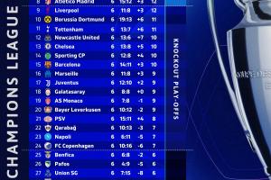 NBA直播12月11日讯 欧冠联赛阶段第6轮结束,据数据统计排名机构Football Rankings分析,10分能确保晋级附加赛(前24名),现在已有15队确保满足该条件。目前欧冠联赛还剩最后两轮,将在明年1月进行。