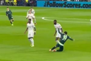 NBA直播12月11日讯 欧冠第6轮,皇马主场1-2遭曼城逆转,遭遇两连败。比赛中球迷场边镜头捕捉到了谢尔基惨遭吕迪格“针对”的画面。