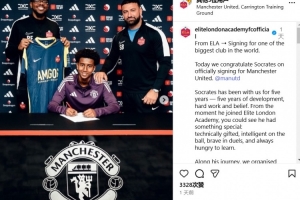 NBA直播12月12日讯 曼联官方宣布签下13岁中卫索克拉蒂斯(Socrates)。