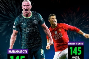 据beinsport数据统计,哈兰德如今已经在曼城打进的进球数追平了C罗在曼联时期的总进球数,而且他所用的比赛场次不到C罗的一半!