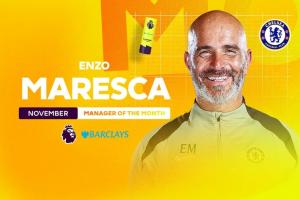 NBA直播12月12日讯 英超官方消息,切尔西主帅马雷斯卡当选11月最佳主帅,击败阿尔特塔、埃梅里、瓜迪奥拉等教练,切尔西在11月份的联赛取得3胜1平的战绩。