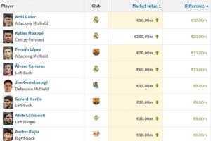 NBA直播12月12日讯 德转更新西甲身价,涨幅排行中,居莱尔以3000万欧的涨幅位列第1,姆巴佩涨2000万欧第2。
