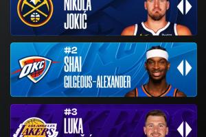 NBA直播12月12日讯 NBA官网公布了最新一期的常规赛MVP榜单,约基奇SGA东契奇稳定前三,上期第10的杰伦·布朗蹿升至第五,上期获得提名的里夫斯升至第七。