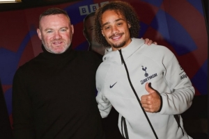 NBA直播12月13日讯 热刺攻击手哈维·西蒙斯更新社媒动态,晒出与鲁尼的合照。