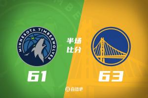 NBA直播12月13日讯 NBA常规赛,勇士半场63-61领先森林狼。