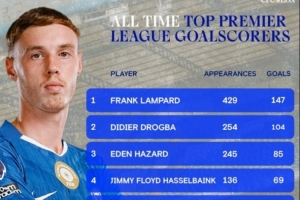 NBA直播12月14日讯 在本轮英超切尔西2-0击败埃弗顿的比赛中,帕尔默破门。切尔西官方也晒出了队史英超射手榜,帕尔默升至第9,具体榜单如下: