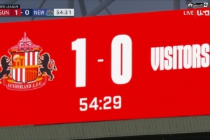 NBA直播12月15日讯 桑德兰在本轮英超1-0击败纽卡,而现场画面可以看到,桑德兰没有将死敌纽卡的队名和队徽放到记分牌上。