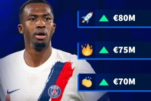 NBA直播12月15日讯 德国转会市场即将更新法甲联赛身价,今天他们发文,预热了巴黎圣日耳曼后卫威廉·帕乔的身价。