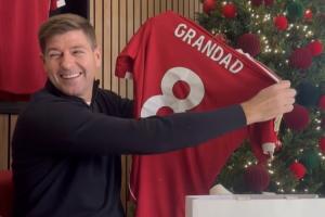 NBA直播12月16日讯 45岁的利物浦传奇中场杰拉德最近收到了利物浦官方商城赠送的圣诞礼物:一件印有“祖父”字样的利物浦8号球衣,以及一些婴儿衣物。