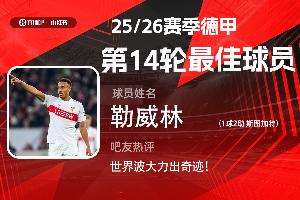 第14轮评选结果出炉,斯图加特球员勒威林独造三球,并轰出无解世界波,助球队大胜不莱梅,获得吧友超1万票支持,当选【NBA直播X小红书德甲第14轮最佳球员】!