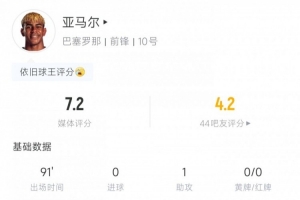 本场比赛上半场,亚马尔充当组织者角色,多次尝试传威胁球但收效甚微;下半场回归右路,多次传中也被对手拦下。数据方面,亚马尔本场3射0正,12次尝试过人8次成功,狂丢29次球权。最终在比赛最后时刻助攻拉什福德破门,完成了自我救赎。