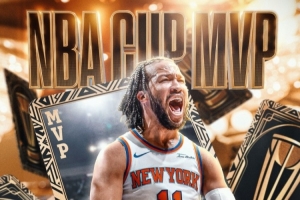 NBA直播12月17日讯 NBA杯决赛,尼克斯124-113战胜马刺,球队核心后卫布伦森喜获NBA杯MVP!