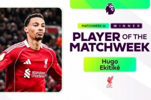 NBA直播12月17日讯 英超官方消息,利物浦前锋埃基蒂克被评为联赛第16轮最佳球员。