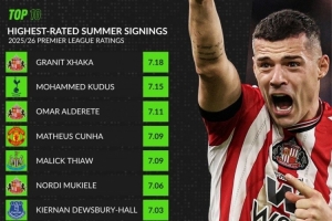 NBA直播12月18日讯 whoscored统计了本赛季英超新援的场均评分情况,桑德兰队长扎卡居首。