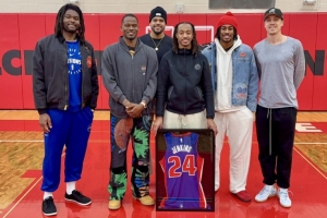 NBA直播12月19日讯 活塞今天将在客场对阵独行侠。在赛前,丹尼斯·詹金斯这位达拉斯本地球员回到了他的高中母校希尔克雷斯特高中,与学弟学妹们分享了一些人生感悟,而他的多位队友也来到现场支持他。