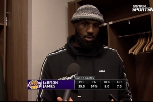 NBA直播12月19日讯 今日,湖人143-135客场击败爵士,迎来两连胜。赛后,湖人前锋詹姆斯接受了采访。