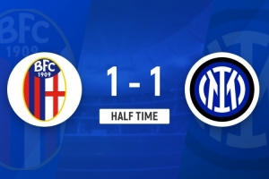 NBA直播12月20日讯 意大利超级杯半决赛,博洛尼亚对阵国际米兰,比赛在沙特国王大学体育场进行。上半场,小图拉姆2分钟闪击建功,比塞克手球送点,奥尔索里尼点射建功,贝纳德斯基伤退。半场战罢,国米1-1博洛尼亚。
