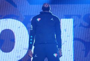 25年全明星赛,詹姆斯在赛前采访时临时宣布,因腿部/脚踝不适,他不会出战。