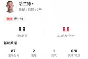 NBA直播12月21日讯 曼城在本轮英超对阵西汉姆联,哈兰德本场数据如下: