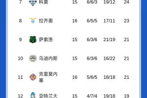 NBA直播12月21日讯 意甲第16轮率先结束2场比赛,尤文2-1罗马,拉齐奥0-0克雷莫内塞,最新积分榜如下: