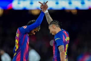 NBA直播12月22日讯 西甲第17轮巴萨客场2-0击败比利亚雷亚尔,拉菲尼亚和亚马尔各入一球。赛后《世界体育报》表示,冬季冠军可以让巴萨以十分乐观的心态迎接2026年的到来。