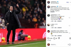 NBA直播12月22日讯 今天凌晨,维拉在英超主场2-1击败曼联,球队主帅埃梅里赛后在Instagram发文庆祝胜利。