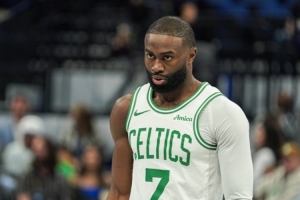 NBA直播12月22日讯 近日绿军球星杰伦·布朗今日在接受《人物》杂志采访时,针对自己的发际线粉沾到对手身上一事给出了自己的看法。